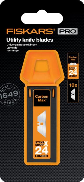 - Pakaitiniai peiliai "Fiskars CarbonMax™" pagalbiniams peiliams su patentuota geležtės konstrukcija.