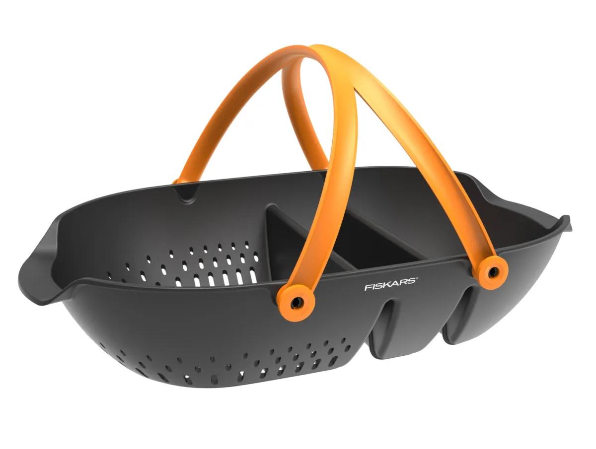 „Fiskars Plus Garden“ derliaus krepšys yra idealus derliaus nuėmimui, transportavimui ir valymui bei maisto sodininkystės įrankiams. Sietinės pusės turi drenažo angas, skirtas ką tik surinktų produktų plovimui, o uždara pusė gali būti naudojama švarių produktų ar įrankių mirkymui arba transportavimui. Ergonomiškos šoninės rankenos idealiai tinka nešti abiem rankomis, o atlenkiamos rankenos užfiksuojamos, kad būtų patogu naudoti viena ranka. Pagamintas iš tvirto plastiko.