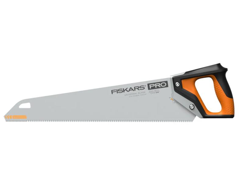 - Rankinis pjūklas "Fiskars Pro Power Tooth" turi trigubai šlifuotą geležtę, kad pjūviai būtų greitesni ir galingesni.