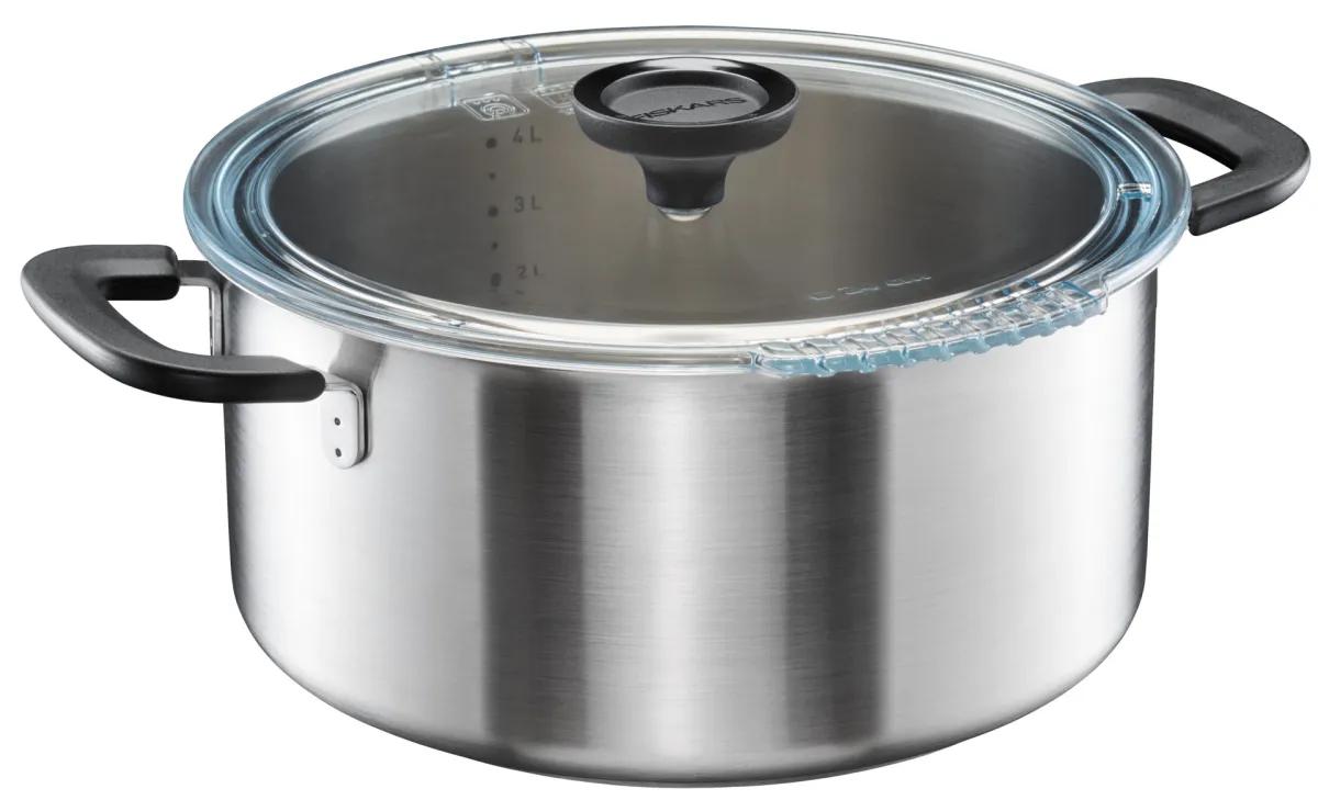 "Fiskars" puodas su dangčiu, 5,0 l / 24 cm, nerūdijantis plienas 1072317