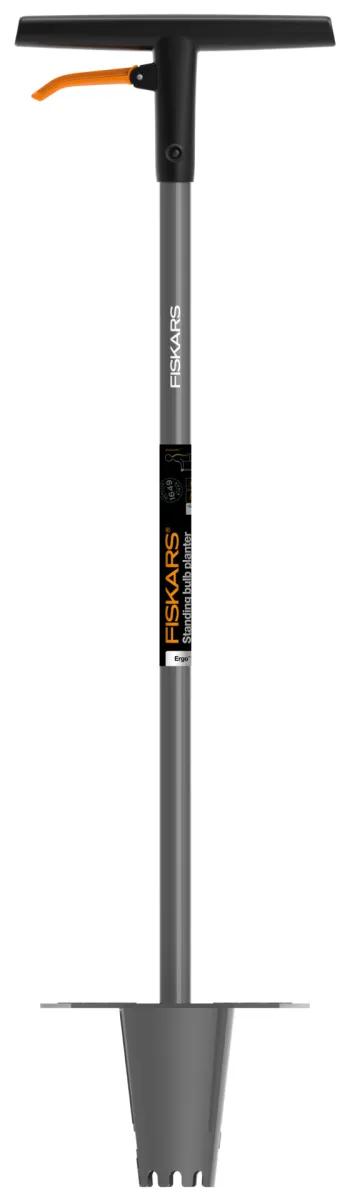 Fiskars Ergo svogūnų sodinimo įrankis iškasa duobę žemėje ir vėl ją užpila žemėmis greičiau ir patogiau nei sodinant ir užpilant atsiklaupus ir lenkiant nugarą. Antislidžią pėdos atramą leidžia lengvai įspausti sodinimo įrankį į žemę. Kūginė darbo galvutė turi aštrius dantukus, kad įsiskverbtų net į kietą dirvą. Svirtis ant koteliuko išpurena dirvą virš į duobę įdėto svogūnėlio, todėl jis sodinamas greitai ir efektyviai. Koteliukas pagamintas iš tvirto plieno ir patikimai tarnaus daugelį metų.