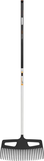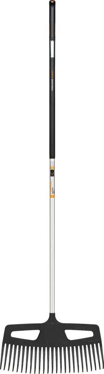 Platus grėblys su lanksčiais pirštais, skirtas efektyviam lapų grėbimui dideliuose plotuose. Tvirtas ir tuo pačiu lengvas kotas iš grūdinto aliuminio, skirtas lengvai tvarkyti sodą be nereikalingų pastangų. Koto rankenos vieta padengta patogia „Softgrip™“ medžiaga. Praktiška skylė laikymui