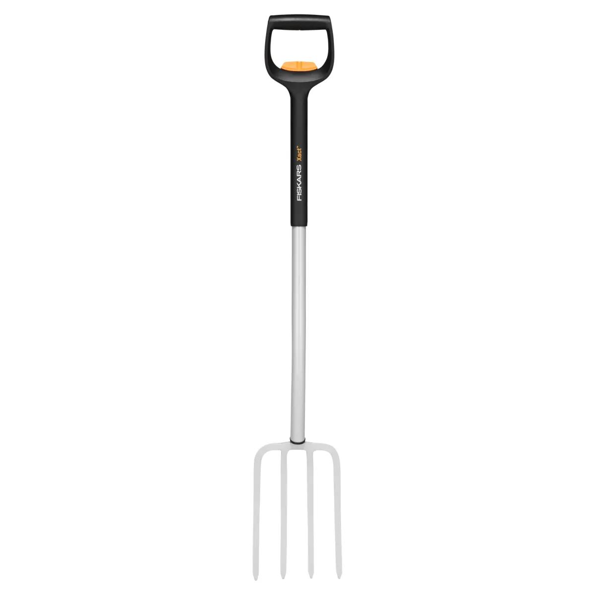 FISKARS XACT šakės tinka kasti ir apversti suspaustą dirvą, patogiai perkelti mulčią, sodinti, aeruoti veją, iškasti akmenis ir piktžoles.