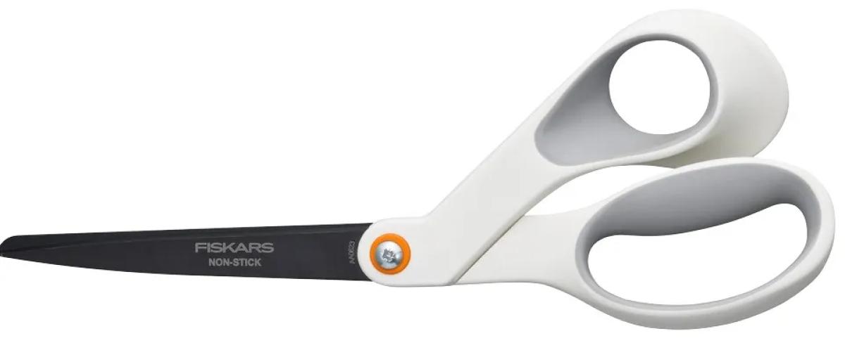 - Universalūs žirklės „Fiskars Non-Stick™“ idealiai tinka lipnių medžiagų kirpimui.