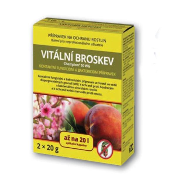 - Jame yra fungicidas Champion 50 WG, kontaktinis fungicidas ir baktericidas vandenyje disperguojamų granulių (WG) pavidalu, skirtas apsaugoti nuo grybinių ir bakterinių ligų ir abrikosų žiedams apsaugoti nuo šalnų.